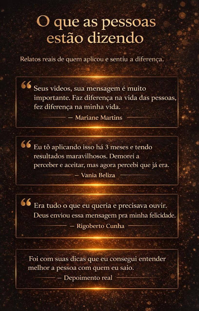 Um processo terapêutico tradicional custaria centenas de reais por mês. Oferta Especial: De R$ 497 por apenas R$ 97,00. Pagamento único, acesso imediato e vitalício.Garantia Incondicional de 7 Dias: Se você não sentir que teve mais clareza, eu devolvo cada centavo. Sem burocracia.